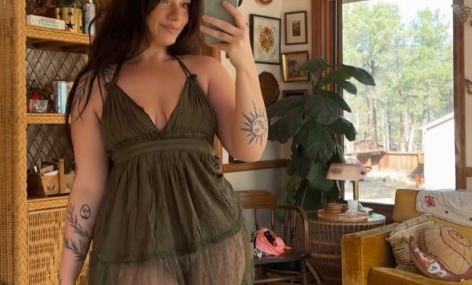 May be an image of 1 person, blonde hair, slip and sleepwear
