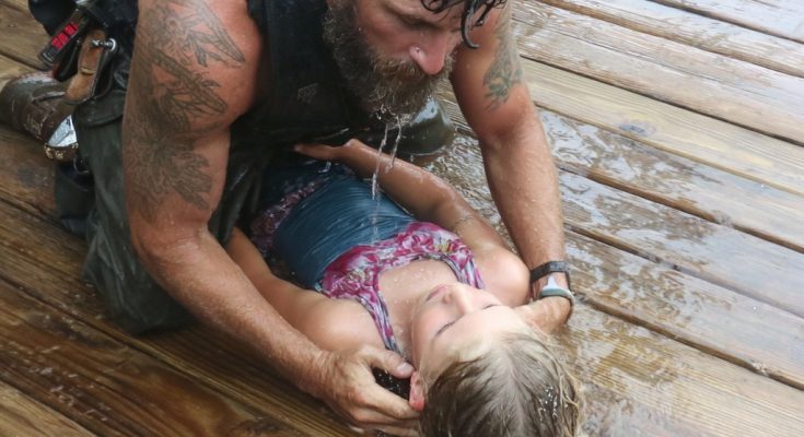 He laid her gently on the grass and started CPR—steady, focused, like he’d done this before. “Come on, kid,” he said quietly, pressing rhythmically against her chest. “Come back to us.”